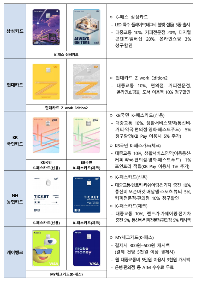 1) 삼성 K패스 체크카드: 교통비와 쇼핑 혜택에 중점